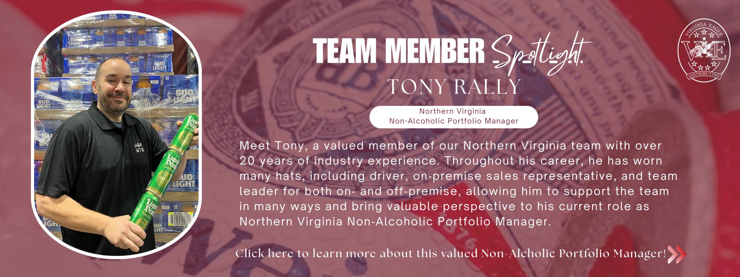 Our employees are what makes Virginia Eagle Distributing a great company. We offer a full benefits package and a fun, fast-paced work environment. Virginia Eagle Distributing Company is an Equal Opportunity Employer (M/F/D/V).
